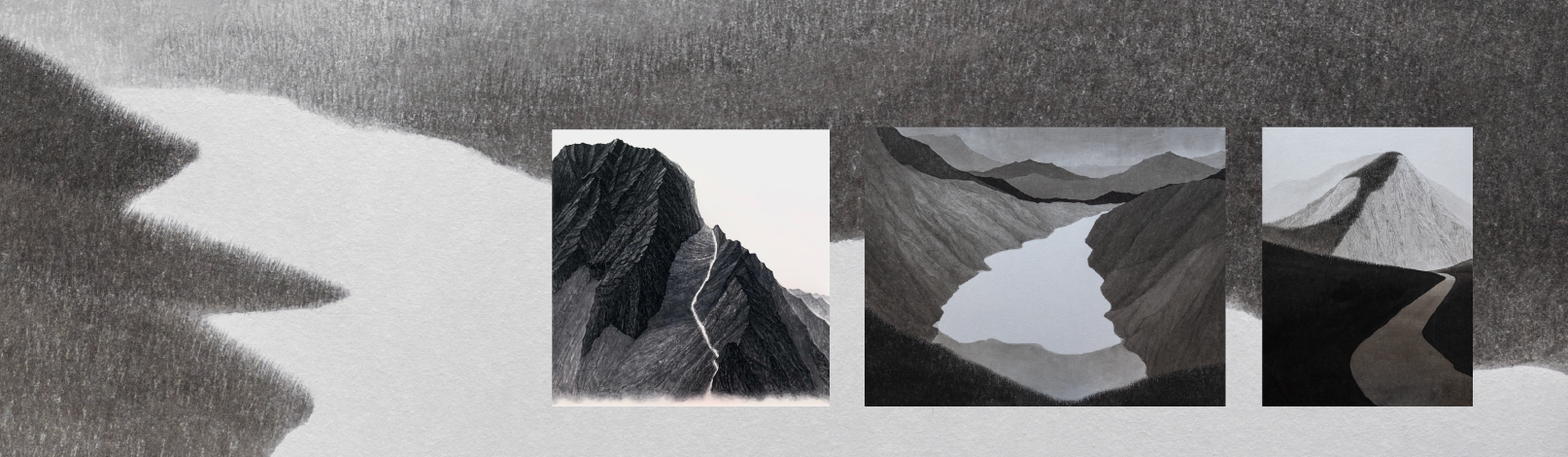「我畫山,只因為我爬山,而我身在其中會感到自由且平靜。」高定,1999 年出生於台灣南投,以黑白水墨為創作語言,探索傳統筆法在當代語境中的轉化。創作建立於長期行走山岳的身體經驗之上,描繪臺灣高山的岩塊與稜線,並以「內在風景」為核心,使畫面回到節奏、結構與留白之間的呼吸。